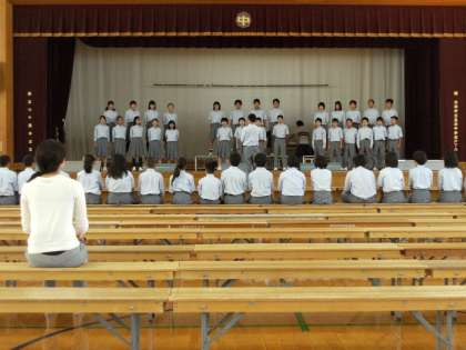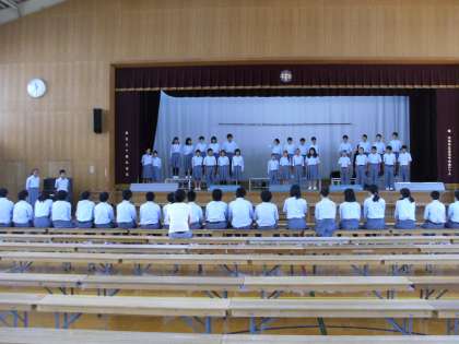 まず合唱コンクールで、3組、1・2組の合唱です。