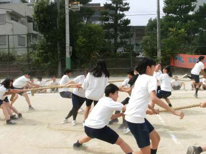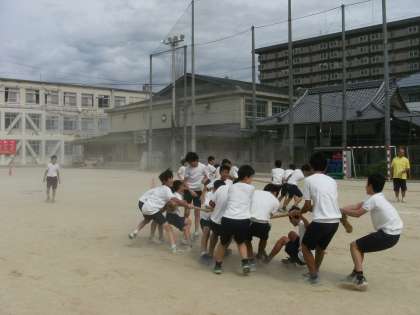 ラジオ体操のあと、団体競技の「ゲット・ザ・ロープ」を行い、入退場の確認と実際の競技をして大いに盛り上がりました。本番が楽しみですね!