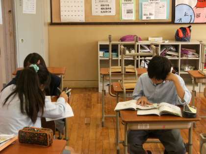 放課後、テストに向けて、自主学習に取り組んでいる生徒がいます。