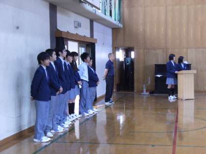 生徒会本部の報告のあと、校長先生から本部のみなさんへねぎらいの言葉をかけていただきました。生徒会本部のみなさん、本当にごくろうさまでした。