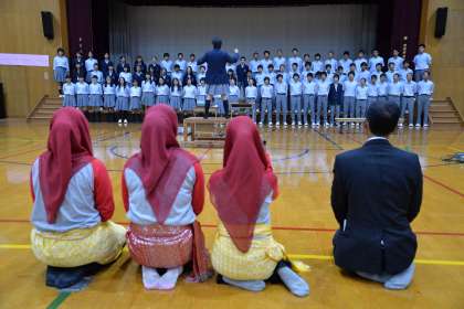 留学生は、自分達の国の自然や食文化、家族などを紹介して、交流を深めました。そのあと2年生は文化の部の学年合唱を披露しました。