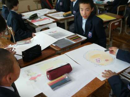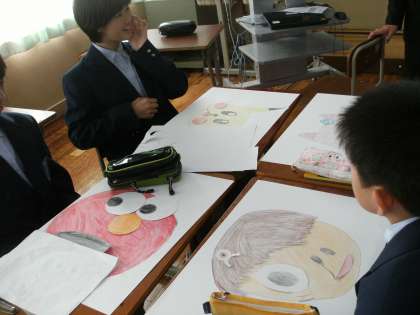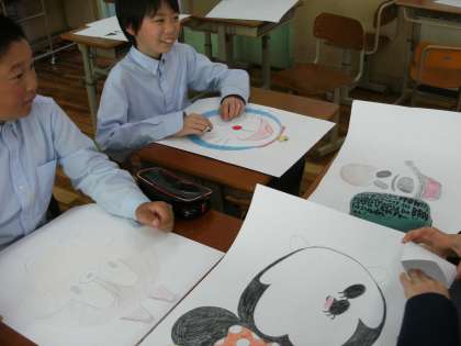 各個人がオリジナルの福笑いをつくって、中級学校の皆さんを楽しませよう!という考えです。いい感じに仕上がってますね!