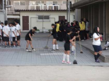 活動が終わった部から、後片付けや清掃活動をしています。