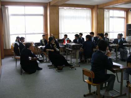 全体会で日本の代表的な曲と朝鮮の代表的な曲を一曲ずつ演奏します。分科会ではそれぞれの曲を一緒に練習しました。