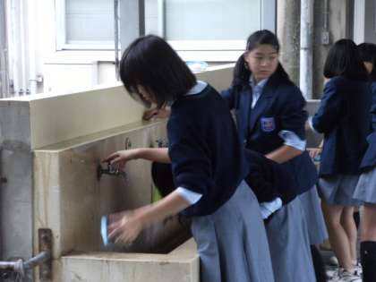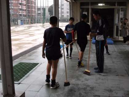 今日は昼からあいにくの雨で、グランド関係の部員は、渡り廊下や手洗い場を中心に掃除してくれました。