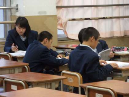 今日から第4回定期テスト1週間前になり、部活動も停止になっています。本日放課後、各学年においてテスト前自主学習を行いました。問題集やテスト対策プリントに取り組んだり、先生にわからないところを質問したりしていました。