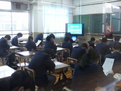 3年生は進路学活です。公立の前期選抜の方法やこれからの進路の日程等、担任の先生から説明を受けました。その後、前回の学習確認プログラムを返却しました。これからの受験勉強に活かしてください。