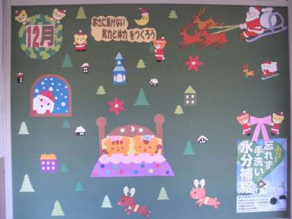 12月に入り、校内のあちこちにクリスマスの飾り付けがされていて、とても華やかな雰囲気になっています。校舎の入り口や下駄箱、そして保健室前がみごとな作品で飾り付けられています。すごく気持ちが和みますね。2期終了まで、あと3週間です。充実した学校生活を送りましょう!