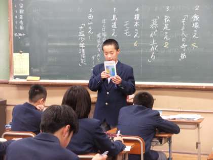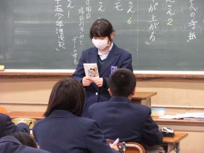 1−2の国語です。ビブリオバトルを楽しんでいました!