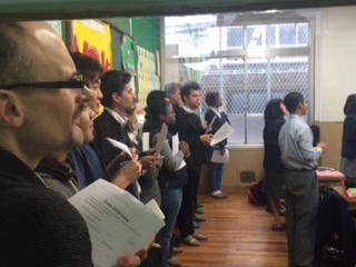 授業では12名のALTの先生やクラスメイトに「1日の生活」に関する質問を英語で行いました。インタビューゲームを通して、楽しみながらお互いの情報を交換することができていました。最初は緊張したようすでしたが、次第に慣れ自分から積極的にALTの先生に話しかけにいくことができ、英語を使ってコミュニケーションがとれたことに喜びを感じていました。その後は、得た情報をもとに、グループで各ALTの先生にインタビューし、わかったことをみんなの前で発表することができました。
