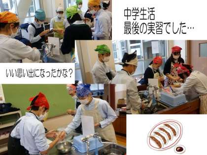 3年生にとっては,中学校生活最後の調理実習でした。今は受験に向けてなかなか家の手伝いもできないかもしれませんが,この餃子はおうちの人に作ってほしいです。ちょっとした気分転換にもなりますよ。ぜひ作ってみてくださいね。