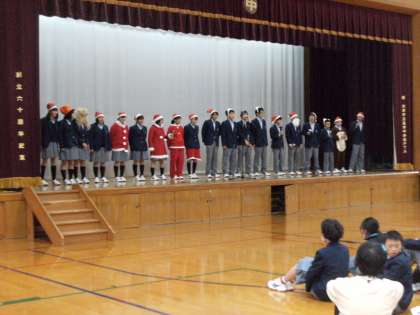 これは生徒会主催のクリスマス会として、2期の終わりに生徒の皆さんに楽しんでもらおうと企画した取組です。新旧の生徒会本部が協力してダンスやコント、そして音楽部の演奏などを行いました。みんな大いに盛り上がりました。