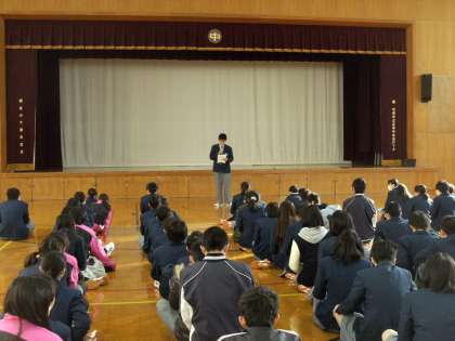 本日2限、2年生では学年集会を行い、2期の振り返りをしました。