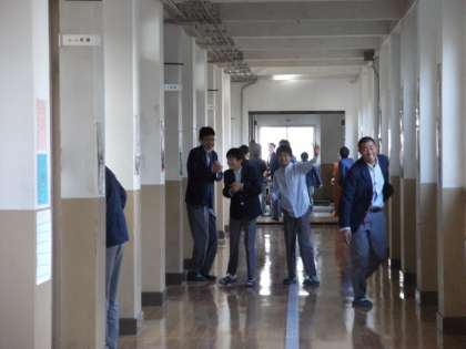 本日朝の学活時に保健体育委員長より、「今日から2・3限の間の休み時間に換気放送を流します。音楽が流れている間、窓を開けて換気してください。風邪をひかないように気をつけましょう!」と呼びかけがありました。
