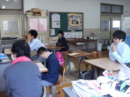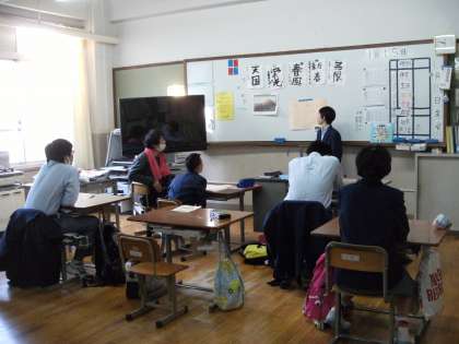 1組は生活で、昨日行われた専門委員会の報告を学級にしていました。