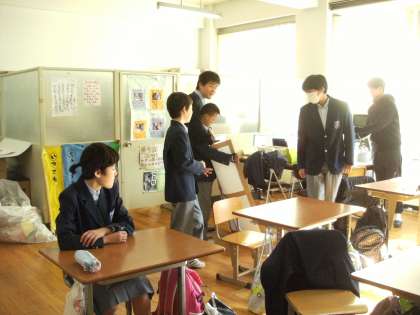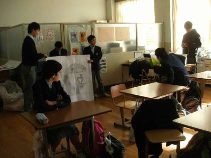 1組は社会です。授業の初めに、2期から取り組んでいた点描画が完成したので、披露してくれました。それぞれが頑張ったパーツが組み合わさって、すばらしい絵に仕上がっていました。