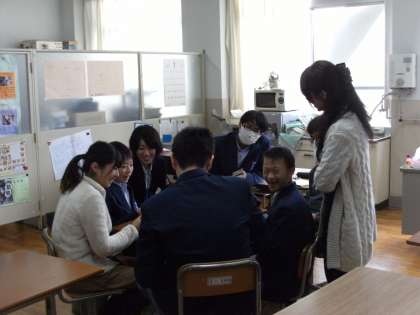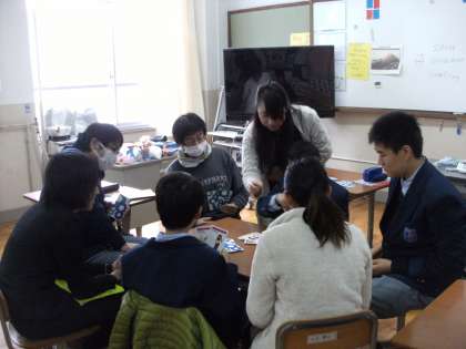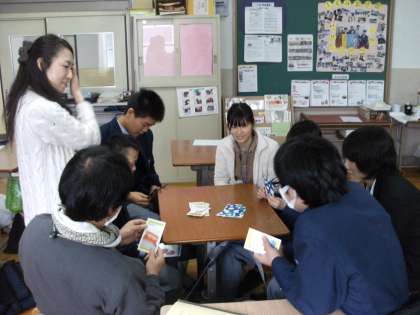 1組は英語です。動物の名前が英語で書かれたトランプを使ってみんなでゲームを楽しんでいました。とても盛り上がっていました。