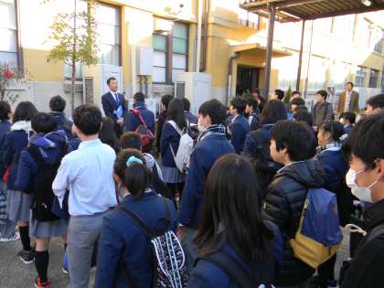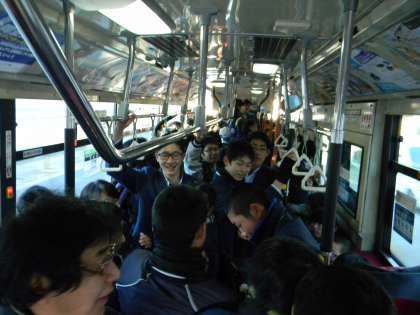 2年生と教員が臨時の市バスと定刻の市バスに分乗。