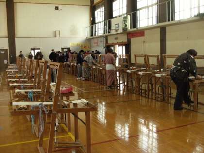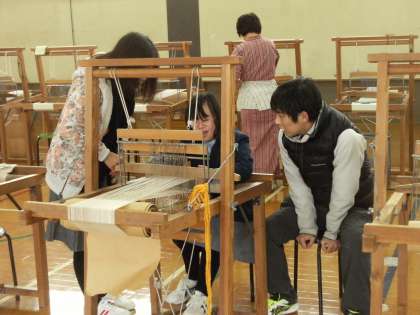 西陣織工業組合の方に来ていただき、地元の伝統産業である西陣織を体験することを通し、1年生の時に実施した和装教育講座の体験と併せて、和服の文化を理解することにつなげていきたいと実施されました。また、出来上がった作品を、次年度の修学旅行でお世話になる民泊家庭へお土産にする予定です。