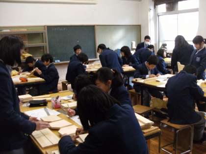 1組は生活で、生徒会誌「ひまわり」の原稿作りをしていました。