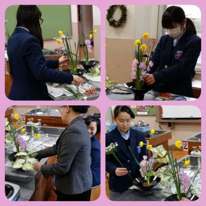月曜日,家庭科部で1月の「池坊いけばな教室〜自由花〜」を行いました。