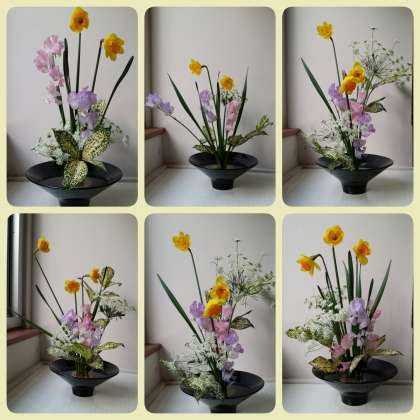 家庭科部員が生けたお花を紹介しましょう。同じ花材を使っていても,こんなに個性溢れる作品に仕上がりました。