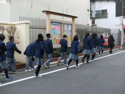 本日1年生は、午後からコンサートホールでのオーケストラ入門教室に行きます。4限目に少し早目の昼食を食べて、12時15分頃に学校を出発しました。千本通から貸切バスに乗車し、いよいよコンサートホールに向けて出発です。