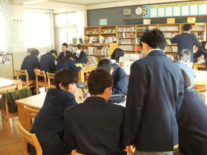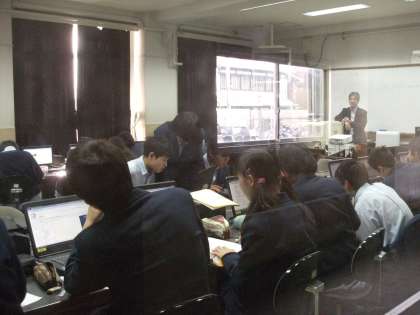 沖縄の歴史や自然、文化などコンピューター室や図書室で調べて、新聞にまとめていきます。みんなとても楽しそうに調べていました。