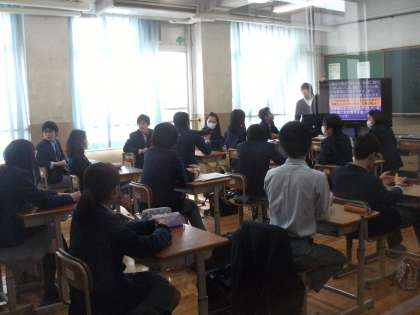 5限目は「こんなとき、どうする?」というテーマで、「受験票を忘れたら?」「受験会場へ向かうバスが渋滞で動かなくなったら?」等、いろいろな場面を想定して、受験上の注意をみんなで考えました。みんなで盛り上がりながらも、真剣そのものでした。