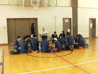 全体での激励、諸注意が終わったあとは、各学校ごとに集合し、担当の先生から詳しい説明を聞きました。