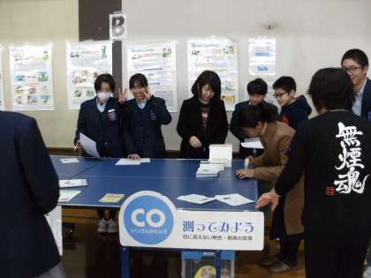 Bのブースでは、『ニコチンの罠と脱出方法』というテーマで体験学習をしました。