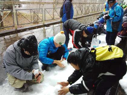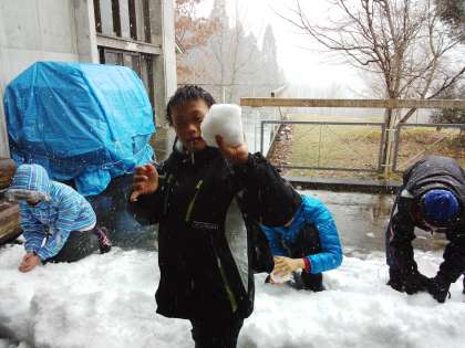 育成冬の宿泊体験学習、花背山の家に残った雪で遊びました。