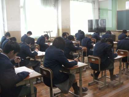 音楽のテスト中です。みんな頑張っています!