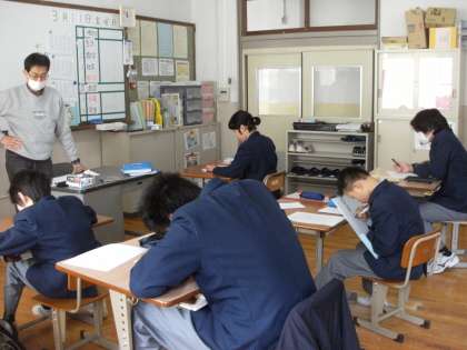 1組は国語です。今年度の振り返りや来年度に向けての抱負を作文していました。みんな頑張っていましたね!