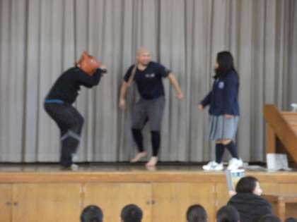 最後は、先生と生徒で出し物に挑戦し、大いに盛り上がって集会が終わりました。1年間よく頑張りました。2年生になっても精一杯頑張りましょう!