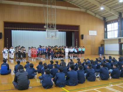 春季大会の激励会では部活のキャプテンが春季大会の抱負を述べました。校長先生の「チームワークを大切に」という言葉を忘れず、自分たちの実力を発揮できるよう、がんばりましょう!