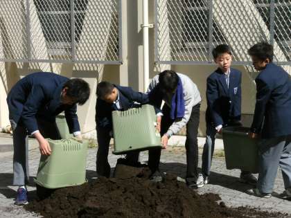 学級旗制作グループと菜園作りグループです。