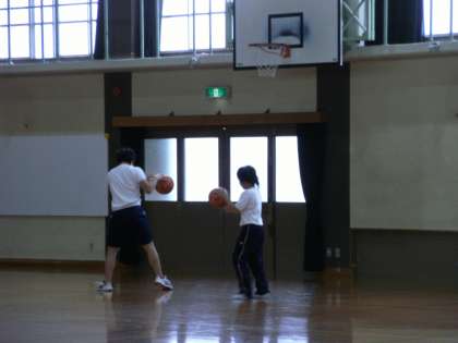 1組は体育でバスケットボールを楽しんでいました!