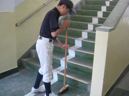嘉楽中学校では、清掃の時間はもちろんのこと、