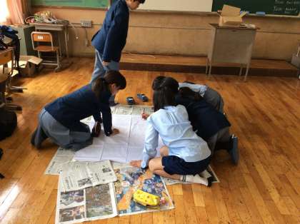 1年生学級目標が決まったので、学級旗作製委員が作製にかかっています。