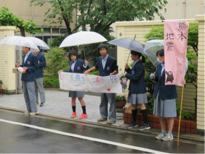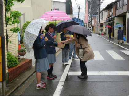 募金活動最終日とあって、たくさんの生徒が協力してくれました。通りかかったトラックの運転手さんから「募金します。僕も嘉楽中の卒業生ですねん。」と言って協力していただきました。地域の方、卒業生の方本当にありがとうございます。