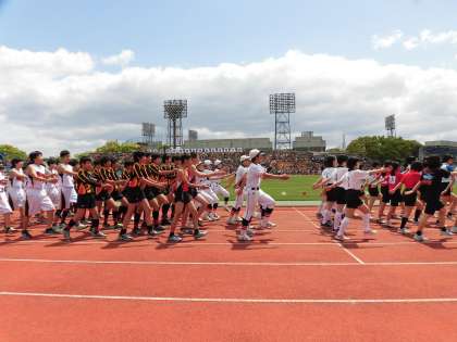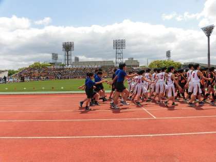 いよいよ校長席前を,嘉楽中生が通り過ぎて行きます