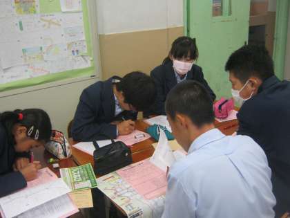 今日は、その取り組みとして、班ごとにルートを考えたり、バスの時刻を調べたりしました。どの班もルートを完成させることができたため、あとは9日に最終の確認を行う程度となりました。当日が楽しみですね。