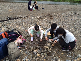 まずは石を組んで火を起こします。
