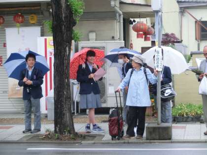 あいにくの雨の中ですが、ところどころで雨もやみ、時間どおりに順調に進んでいます。