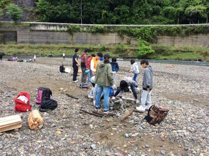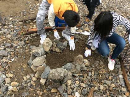 1年生校外学習行ってきました。何とか雨も止み、まずは窯をつくるところからスタート