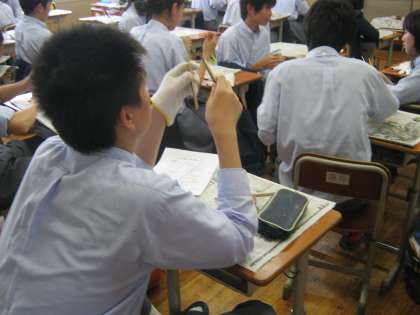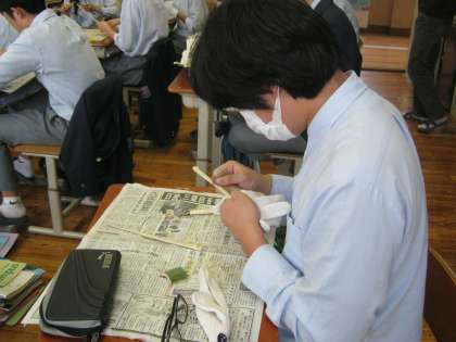 カッターナイフを器用に使いながら、心を込めて作っています。