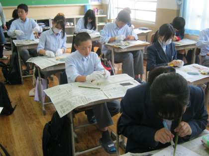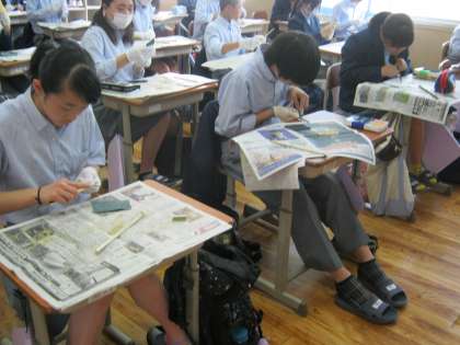 カッターナイフを器用に使いながら、心を込めて作っています。