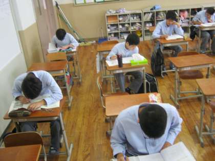 静寂な中、真剣に自学自習をおこなう姿は、