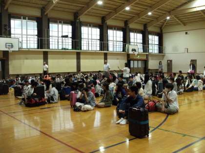 いよいよ修学旅行の出発です。5時45分というとても早い集合時間にも遅れることなく、全員がそろいました。